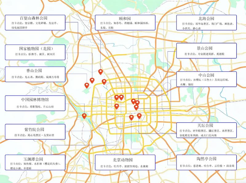 北京市公园管理中心推出“雪景打卡地图”(点击可放大查看)。北京市公园管理中心供图
